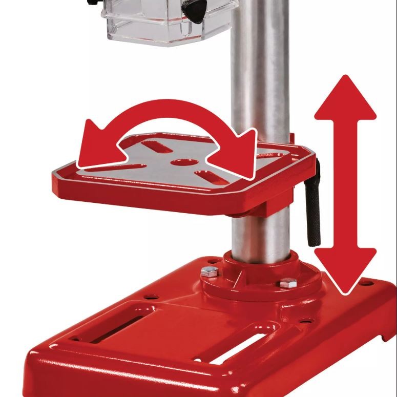 Muligheten til å justere borebordets høyde og vippe og dreie det gjør arbeidet mer komfortabelt .