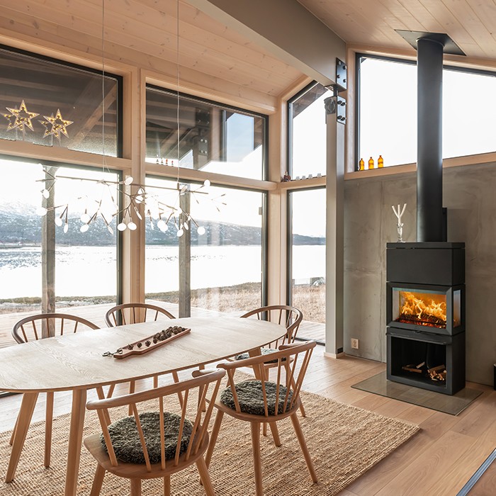 Jøtul F 520 High Top har rom for 60 kg varmelagrende stein, noe som gir inntil 12 timer ekstra varme etter siste ilegg av ved. Glassene er utstyrt med coating som gjør at de holder seg rene og sikrer miljøvennlig forbrenning.