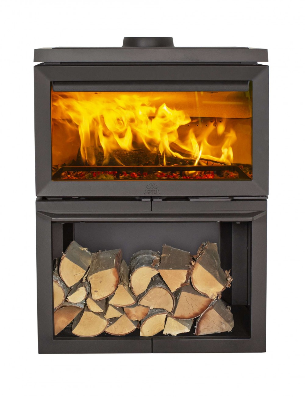 En stor vedovn med unikt design som gir mye varme. Denne vedovnen har flere praktiske funksjoner som gjør den enkel å bruke. Den har en stor og romslig kokeplate som passer godt til matlaging med flere kjeler. Her kan du også holde mat og drikke varmt. Vedovnen er utformet med tre store glass som gir godt innsyn til flammene fra flere steder i rommet. Glasscoating på alle glass og luftspyling bidrar til å holde glassene renere. Med sine brukervennlige luftventiler er opptenning og fyring enkelt, og for tryggere fyring er det kubbestopper i brennkammeret, og smekklås i døren.