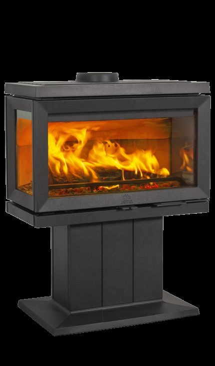 En stor vedovn med unikt design som gir mye varme. Denne vedovnen har flere praktiske funksjoner som gjør den enkel å bruke. Den har en stor og romslig kokeplate som passer godt til matlaging med flere kjeler. Her kan du også holde mat og drikke varmt. Vedovnen er utformet med tre store glass som gir godt innsyn til flammene fra flere steder i rommet. Glasscoating på alle glass og luftspyling bidrar til å holde glassene renere. Med sine brukervennlige luftventiler er opptenning og fyring enkelt, og for tryggere fyring er det kubbestopper i brennkammeret, og smekklås i døren.